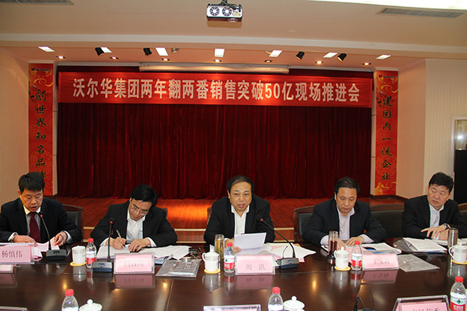 2013年3月5日下午濟寧市市委常委、副市長周洪,山東大學國防科學技術研究院院長劉升賢,青島融道投資有限公司董事長董洪杰,任城區區委書記王寶海,任城區區長岳根才,市直單位、區直單位、區重點企業的領導共同參加了“沃爾華集團兩年翻兩番銷售突破50億現場推進會”。