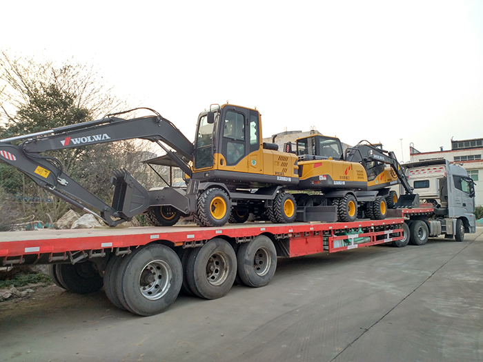沃爾華一批新款輪式挖掘機發往華北市場