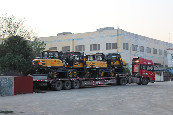 沃爾華一批新款輪式挖掘機發往華東市場