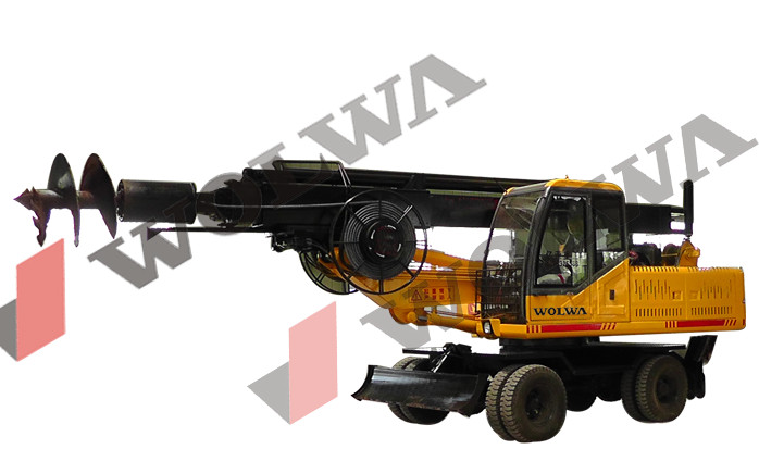 GNLW360輪式旋挖鉆機施工機動靈活、整機噸位小、操作簡單、穩定性強、打樁速度超快、強勁的四輪驅動系統移動快速、專場便利,投資小、收益快;車架及整車全部是50錳鋼材,加厚、加重、,車身桿加強,終生不會變形從而實現小機型鉆大樁孔的特點。