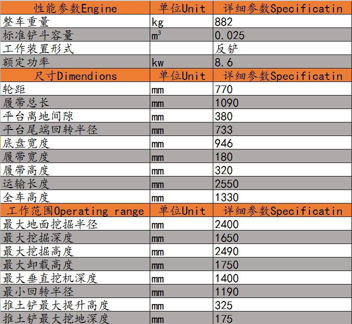1噸微型挖掘機參數