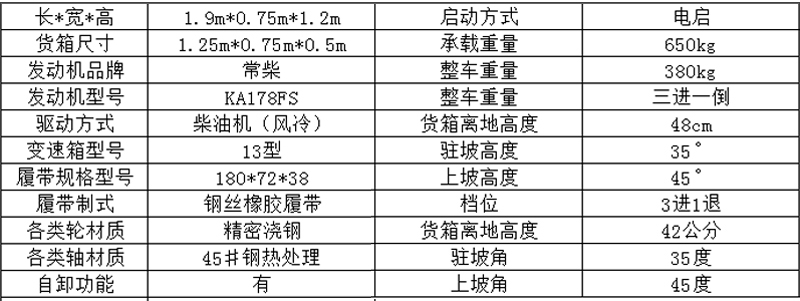 750型履帶運輸車技術(shù)參數(shù)
