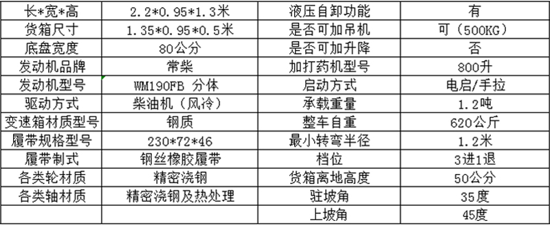1200型履帶運輸車技術參數