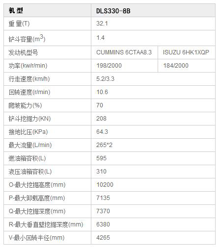 DLS330-8B型液壓挖掘機產(chǎn)品參數(shù)