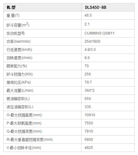 DLS450-8B采用原裝進口康明斯發動機,額定功率為252KW/1800rpm;功率大,油耗低,維護費用低;最大爬坡角度35°,液壓系統采用日本川崎公司專項設計、匹配的液壓系統和日本KYB公司的行走馬達,確保液壓系統工作的可靠性和穩定性,監控器采用世界先進的EPOS電子功率自動控制系統,履帶架、上轉臺、動臂、斗桿、挖斗,材料選用及制造工藝完全按照國際KES標準要求,強度高、性能好;依據人機工程學設計的駕駛室具有像家一樣的操作環境和優良的可視性,低噪音,全視野的前窗及側窗確保在所有方向有優良的可視性,駕駛室內標準配置自動空調系統,使駕駛員有一個好的操作環境。